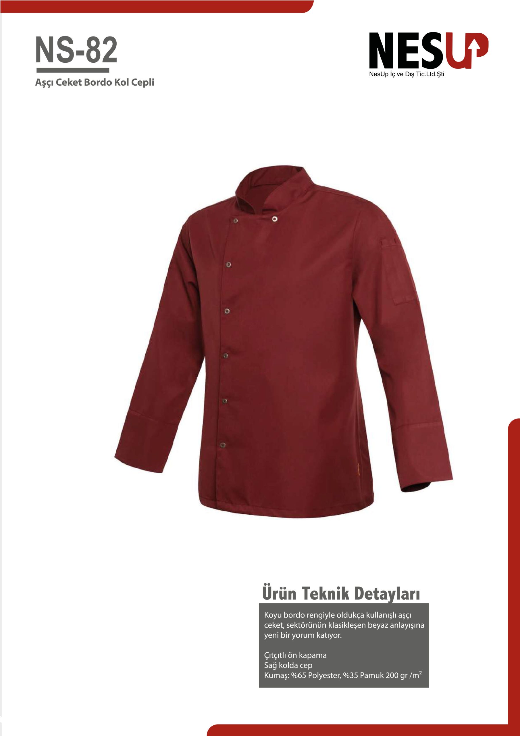ns-82 AŞÇI CEKET BORDO KOL CEPLİ